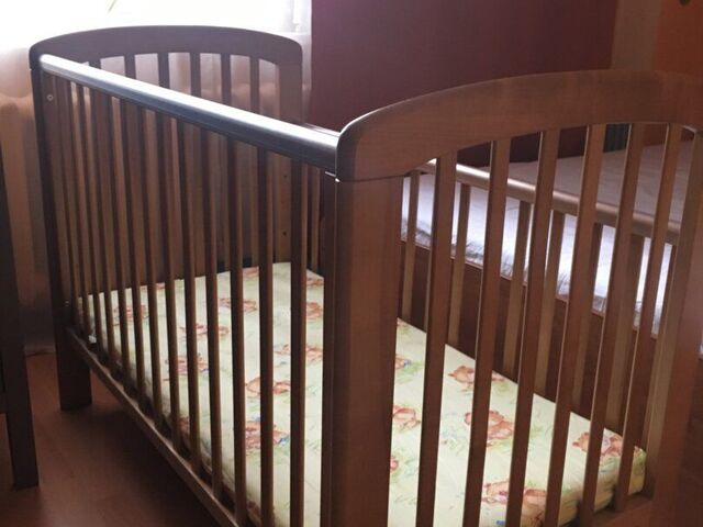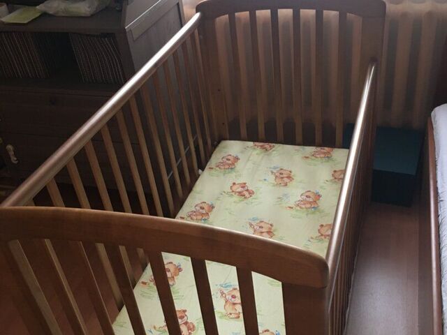 Troll gultiņa labā stāvoklī, pēc viena bērna. Pēc izjaukšanas ieplaisāja apakšējā grīdiņa pie divām skrūvēm vienā pusē. Redzams bildē. Izmērs 120x60. Guļamās daļas augstums regulējs 3 pozīcijās, attiecīgi augstākais - pavisam mazam bērniņam, vidējais pusgadniekam un zemais - tādam, kurš ceļas kājās. Ir iespēja nolaist vienu malu, lai ērtāk bērnu izcelt. Komplektā dodu kokosa matracīti.