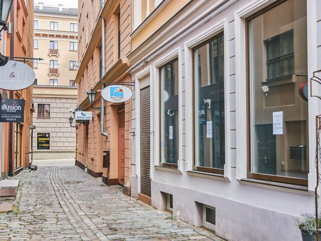 Iznomā komerctelpas 1.stāvā - restorānu/veikalu Vecrīgā, Riharda Vāgnera ielā 12 (faktiskā adrese – Gleznotāju iela).