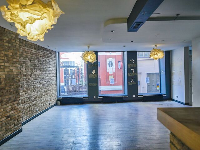 Telpu apraksts: telpas ar kopējo platību 64,4 kv.m. atrodas nama 1.stāvā, ar atsevišķu ieeju no fasādes puses un 3 lieliem skatlogiem. Telpas ir piemērotas restorānam, kafejnīcai, bāram, veikalam, salonam vai galerijai.