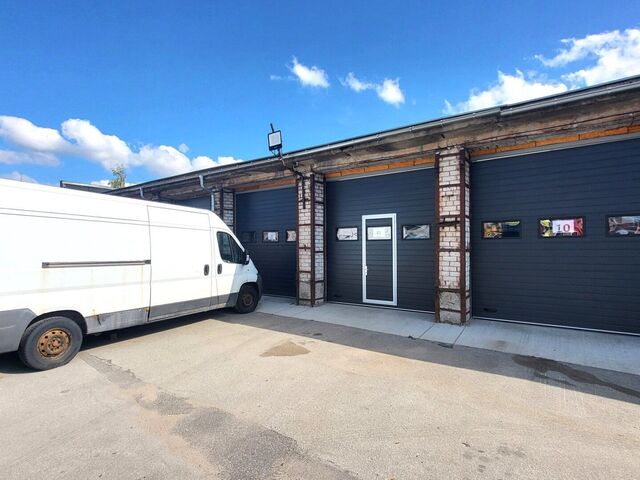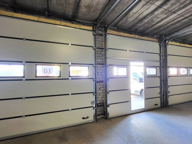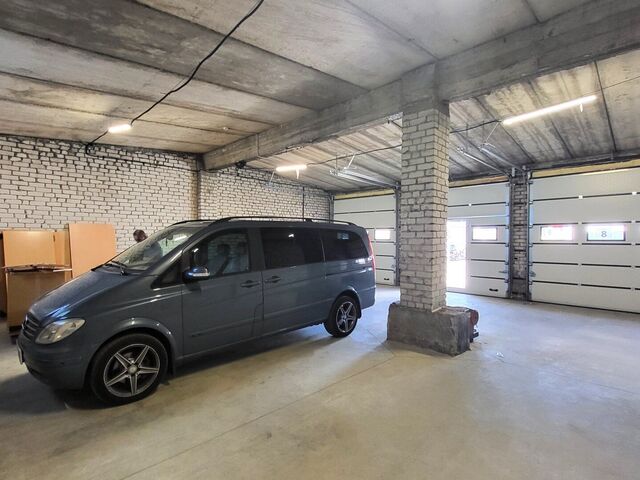 Trīs paceļamie vārti platums 3 m, augstums 3 m. Griestu augstums līdz sijai 3,61 m. Piemērots vieglo auto pacēlāju uzstādīšanai;